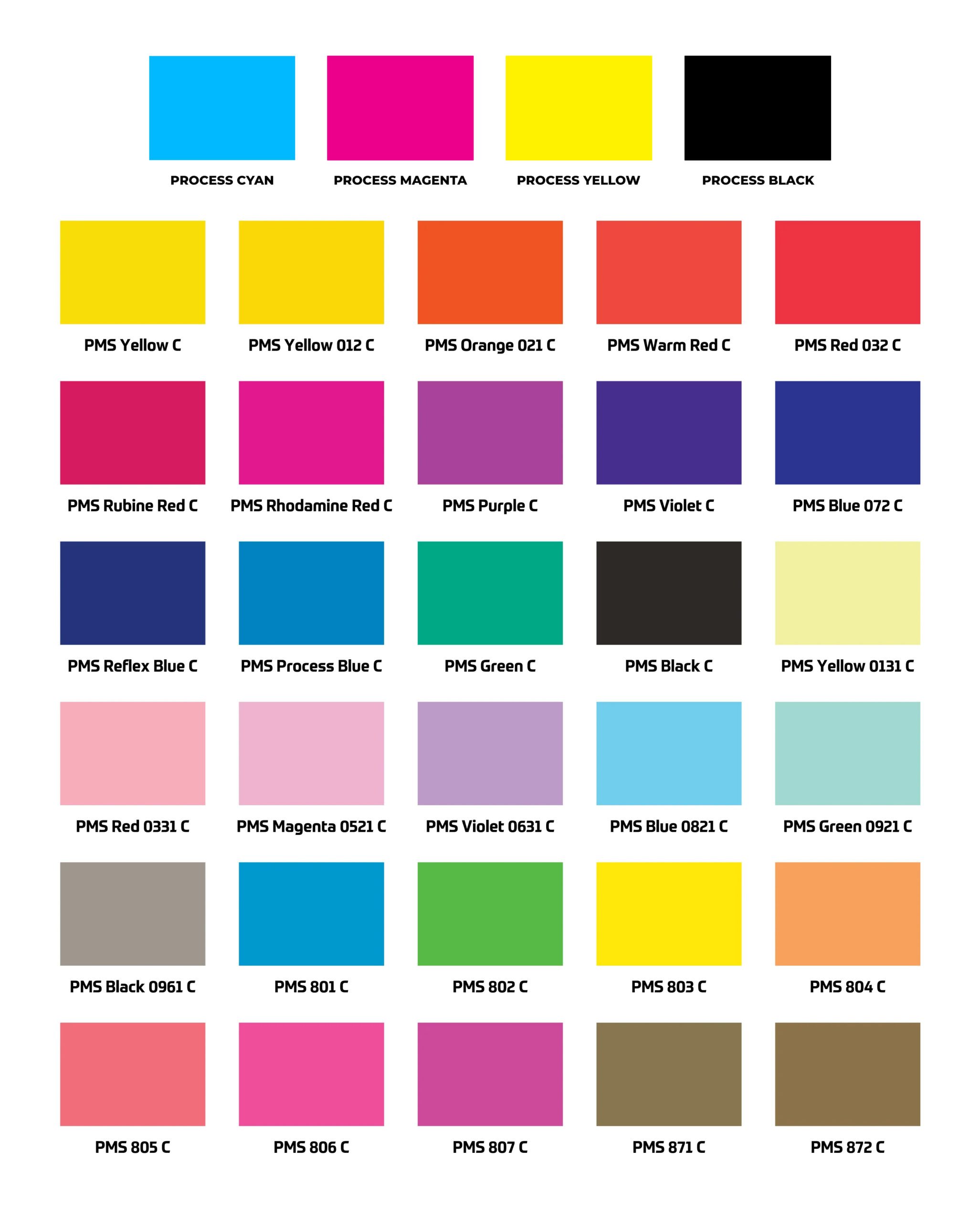 - If you don’t see the desired PMS Code here please notify us or pick the closest color.